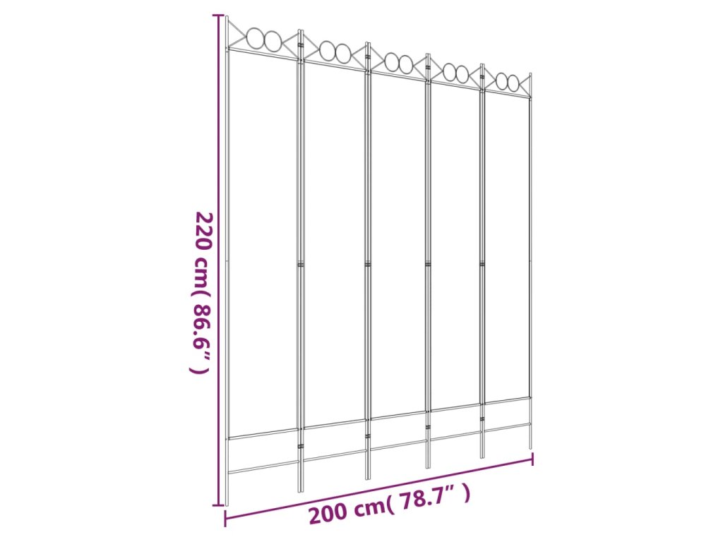vidaXL 5dílný paraván bílý 200x220 cm textil
