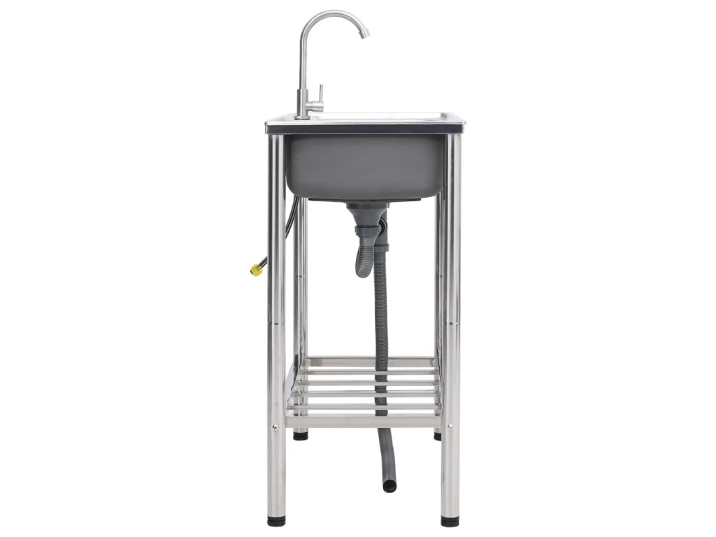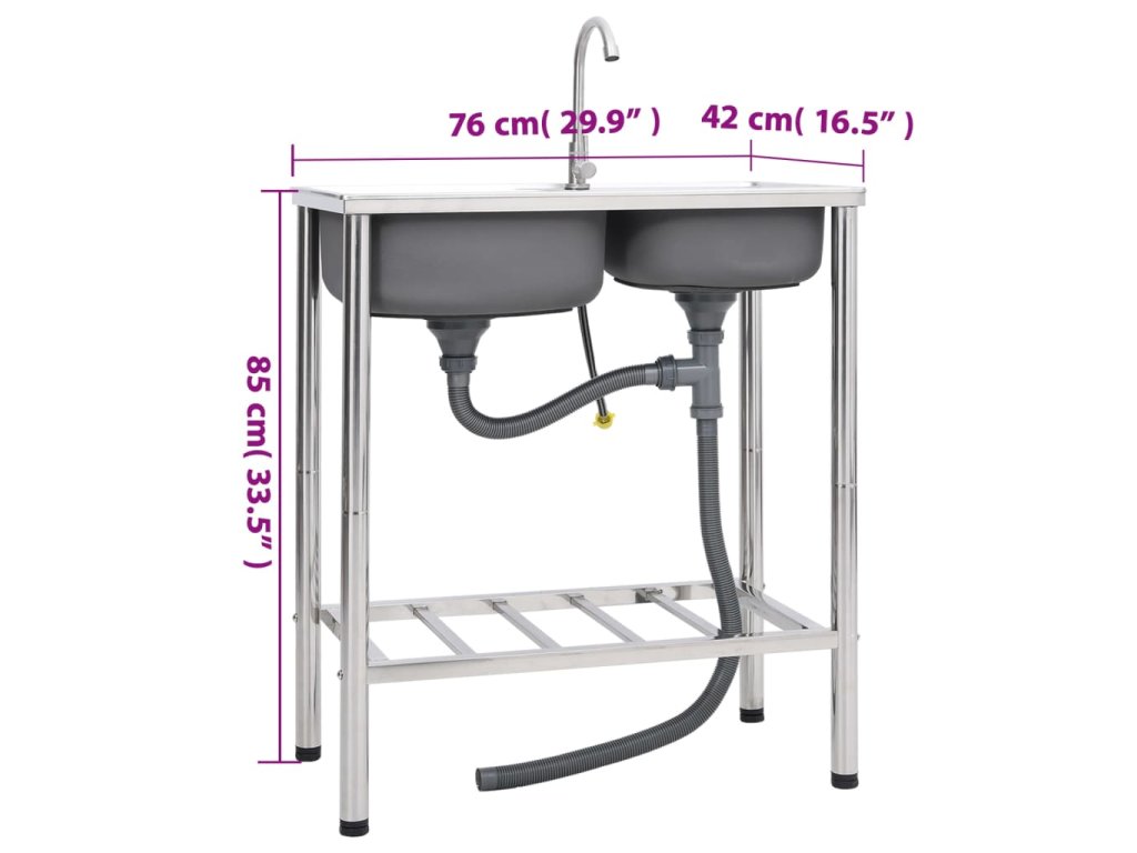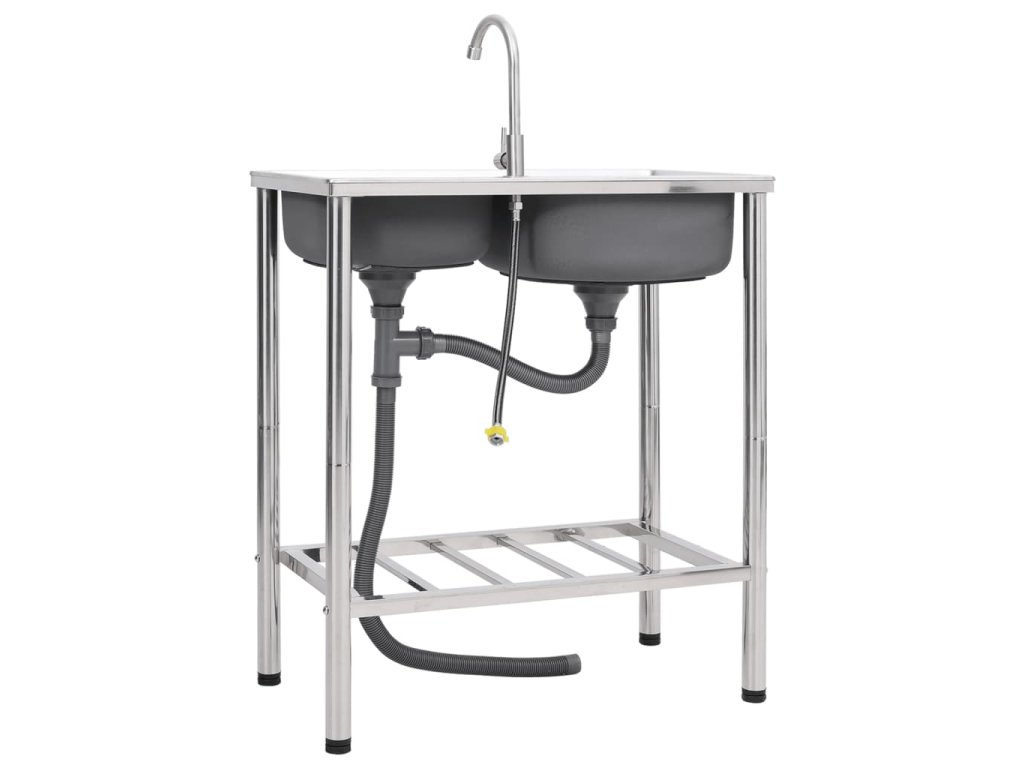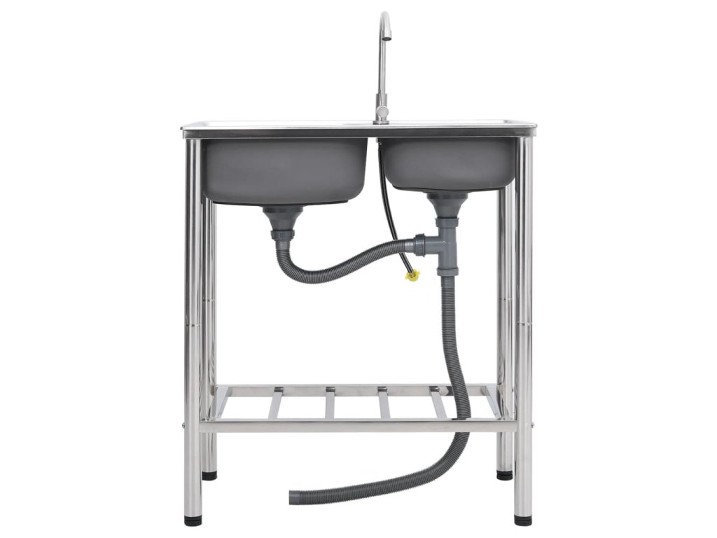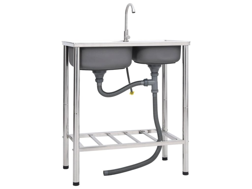 vidaXL Kempingový dřez dvojitý s baterií nerezová ocel