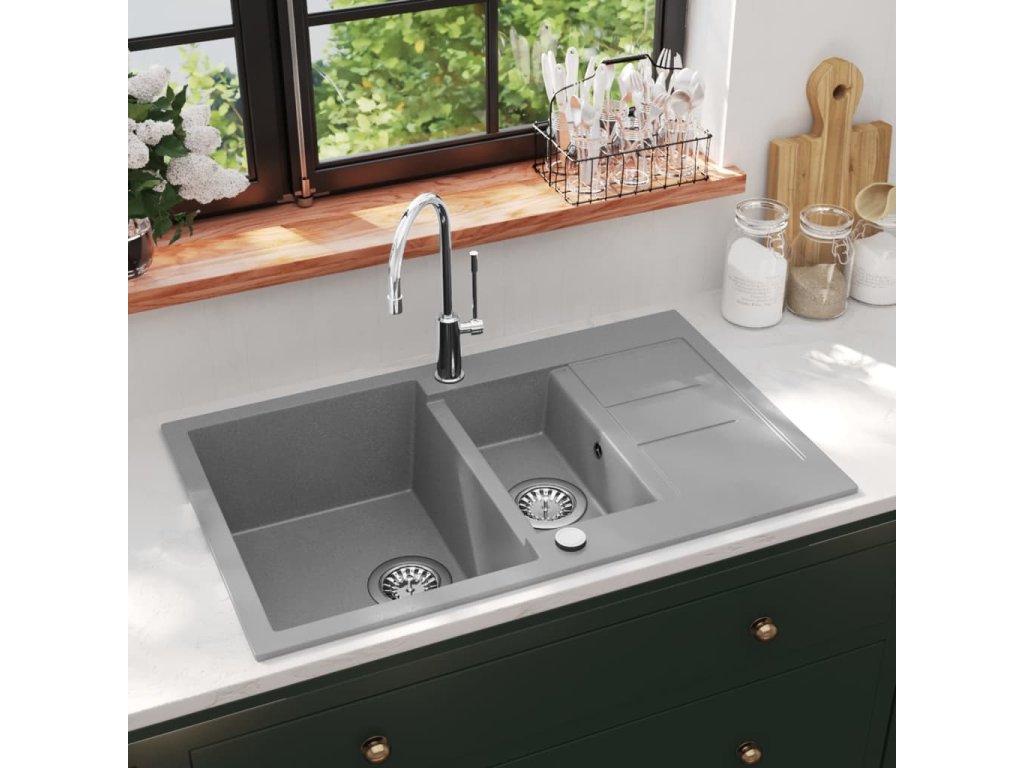 vidaXL Kuchyňský dřez dvojitý žulový šedý
