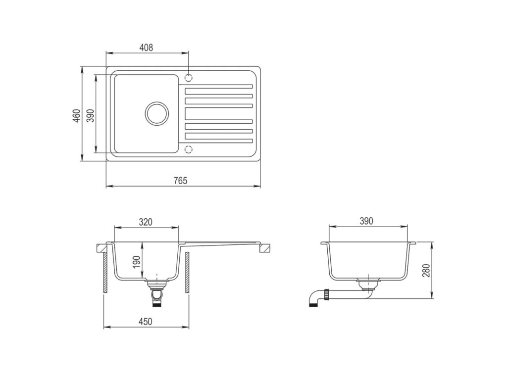 Tento kuchyňský dřez je prostorově úsporný a na kuchyňské lince zabere minimum místa. Odkapávač na boku je ideální pro odkládání umytého nádobí. Dřez je oboustranný a lze ho instalovat nalevo i napravo podle vašich potřeb. Dřez dodáváme se zátkou a v balení je také sítko do dřezu pro snadné odstranění nečistot, nahromaděných na úrovni odtoku.
