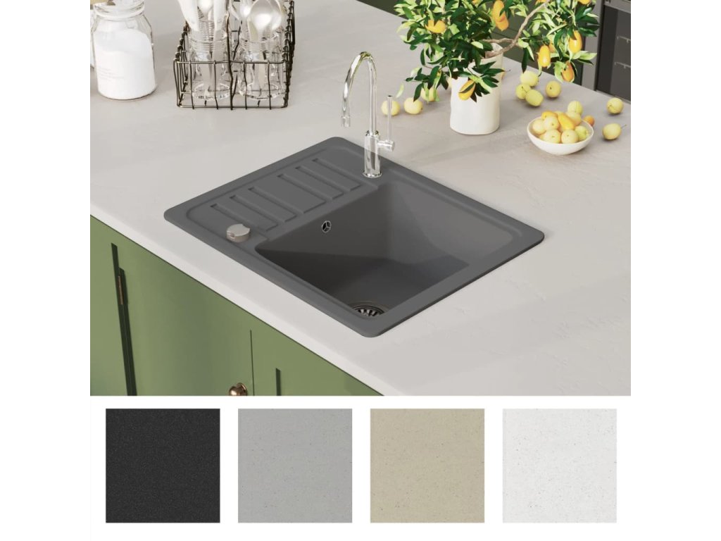 vidaXL Kuchyňský dřez single žulový šedý