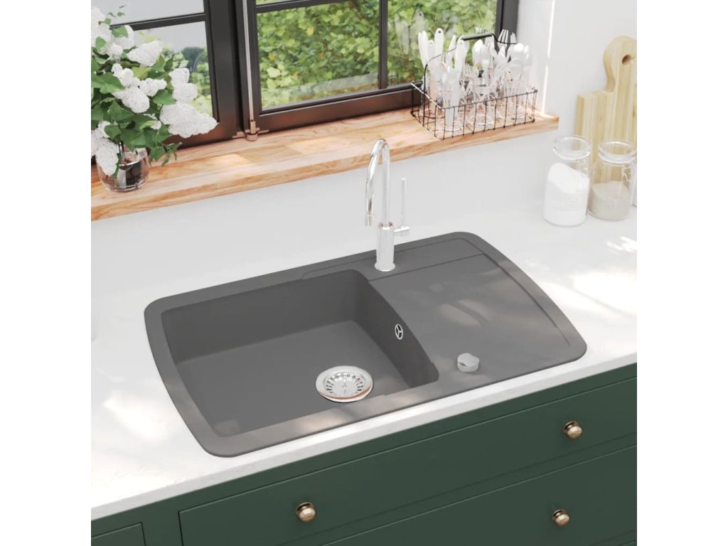 Dřez je zhotovený z vysoce kvalitní žuly, která je odolná vůči teplu, poškrábání a nárazům a snadno se čistí. Umyvadlo je oboustranné, což znamená, že jej lze namontovat na pravou i levou stranu. Přiložené sítko na odpad vám usnadní odstraňování nečistot. Montáž dřezu je snadná.