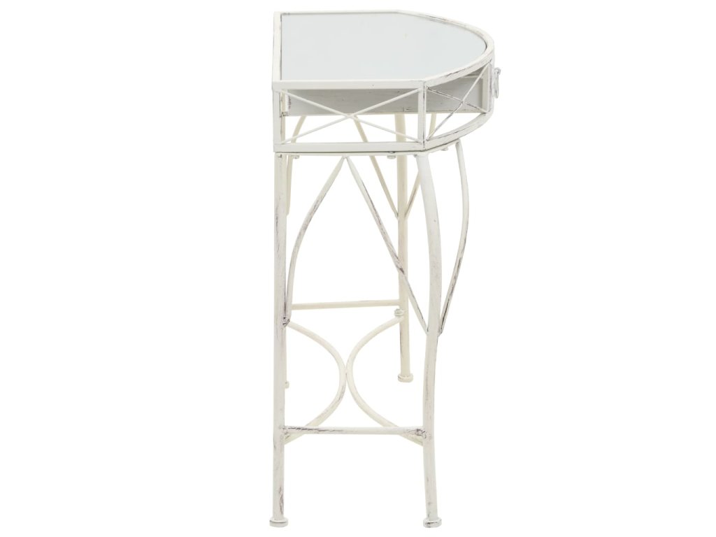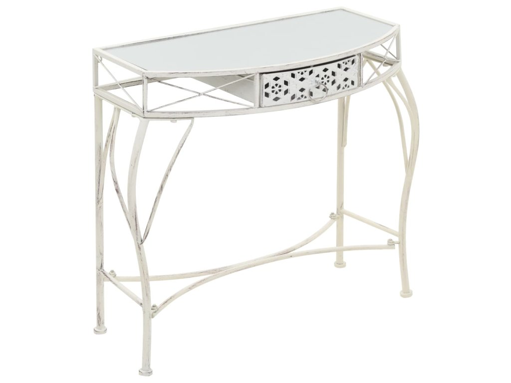 Stolek má kovový rám a skleněnou stolní desku, je stabilní a snadno se čistí. Odkládací stolek disponuje zásuvkou, která je zdobená vkusnými ornamenty, jež stolku propůjčují starožitný vzhled a vnesou do vašeho domova nádech elegance. Montáž výrobku je snadná.