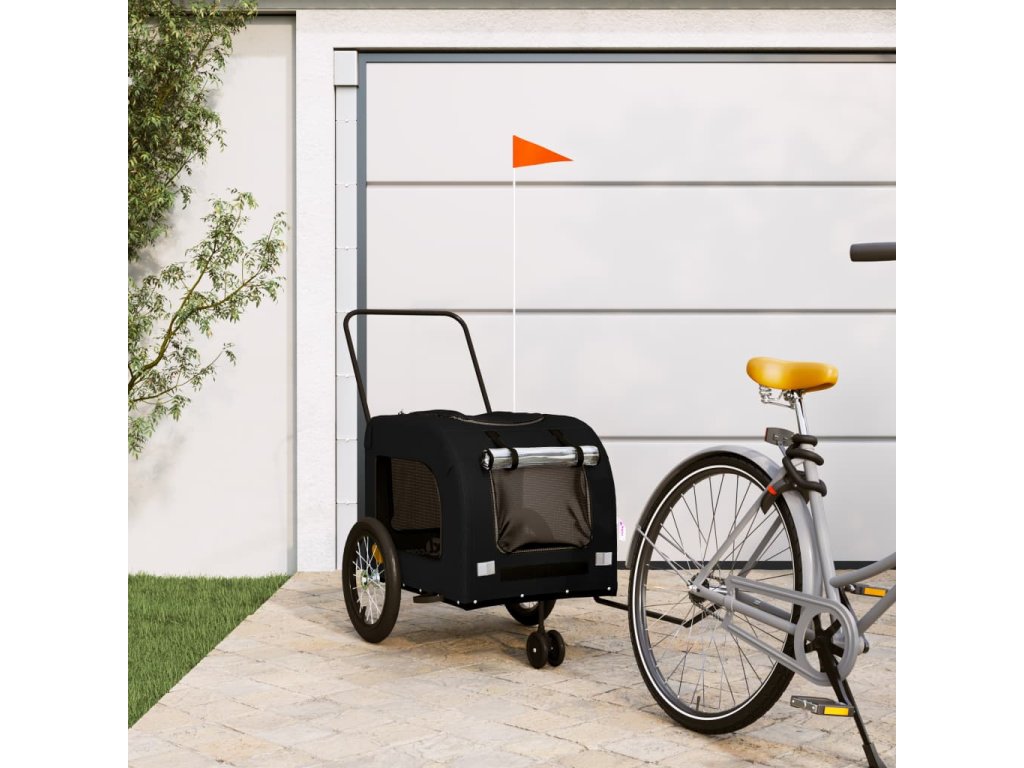 Vozík za kolo pro psa černý oxfordská tkanina a železo