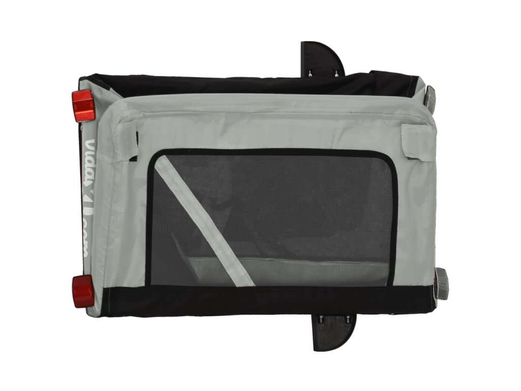 - Praktický přívěs za kolo: Tento vozík za kolo je vyroben z oxfordské tkaniny a je vybaven PVC krytem, který chrání vašeho domácího mazlíčka před mrholením. Dno vozíku tvoří černá nosná deska, vytvářející pohodlný prostor.