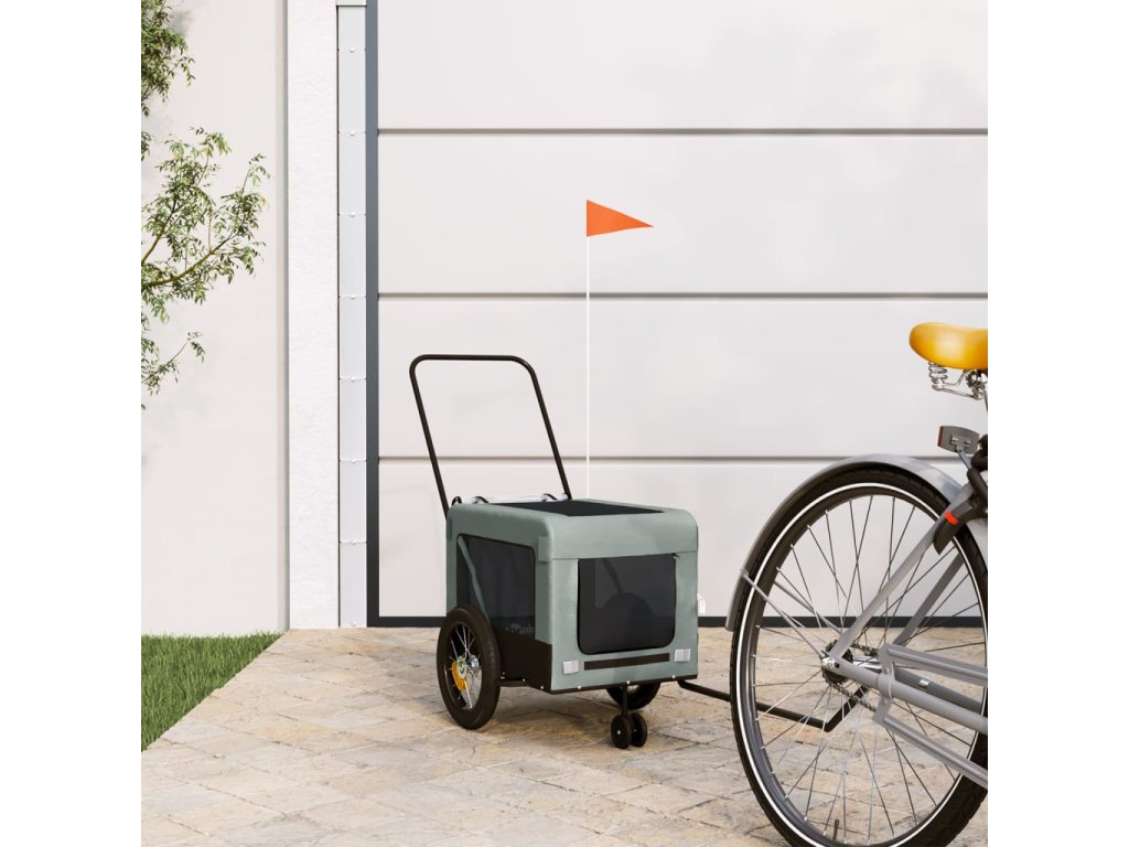 Vozík za kolo pro psa šedý a černý oxfordská tkanina a železo
