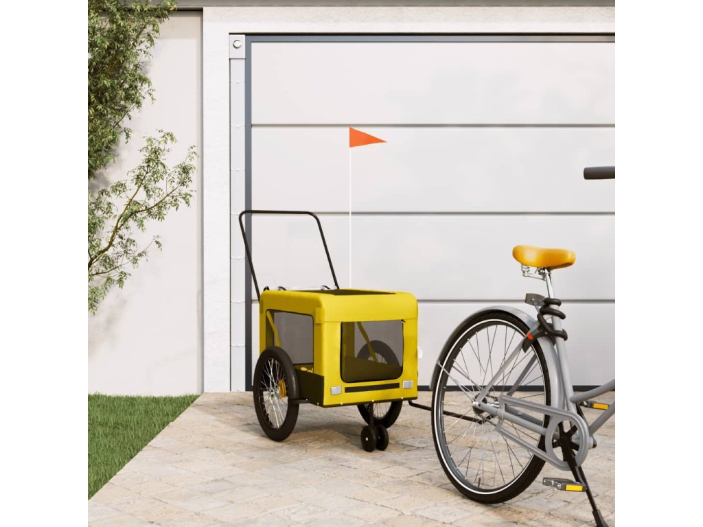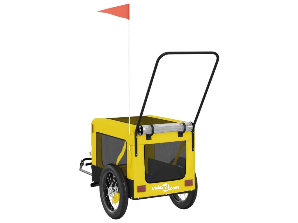 Vozík za kolo pro psa žlutý a černý oxfordská tkanina a železo