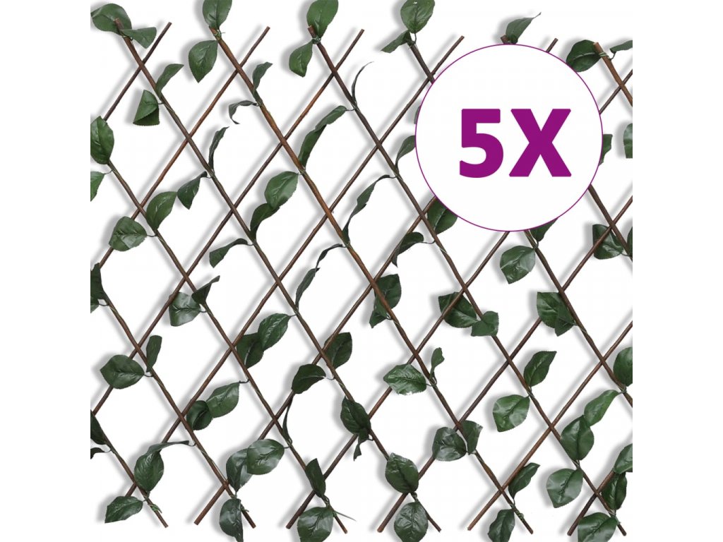 Vrbový trelážový plot 5 ks s umělými listy 180 x 90 cm