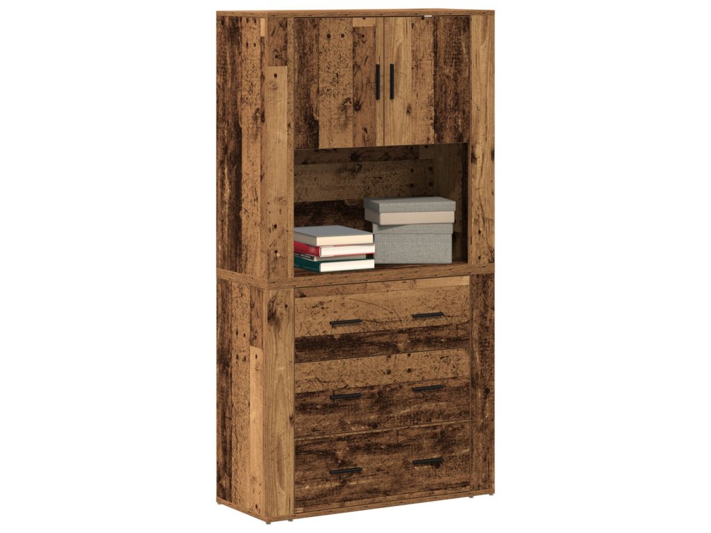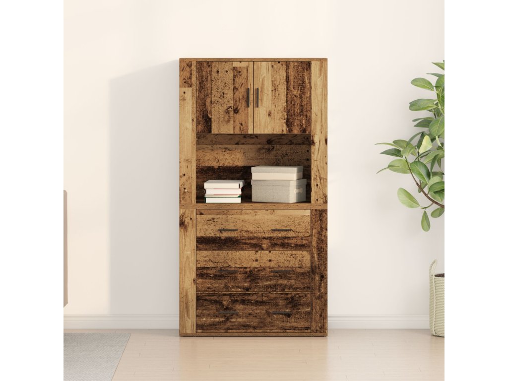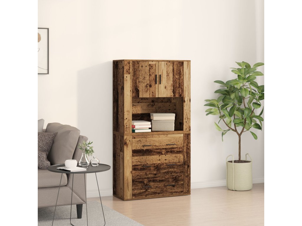 Moderní styling: Tato skříň spojuje styl a funkčnost, čímž vylepšuje váš domov elegantním designem. Je ideální do jídelny nebo obývacího pokoje, protože dodává prostoru jemnou eleganci a šmrnc. S minimem ozdob její čistý design zajišťuje nadčasovou přitažlivost. Řemeslná výroba z inženýrského dřeva: Vyrobená z odolného inženýrského dřeva, skříň zaručuje dlouhou životnost. Robustní rám udrží všechny vaše věci, takže nábytek vydrží dlouho a přitom si uchovává hezký vzhled. Efektivní úložné řešení: Díky policím a zásuvkám z inženýrského dřeva je skříň praktická a umožňuje krátit nepořádek. Dveře na pantech usnadňují přístup k ukládaným věcem a design zajišťuje úhledné uspořádání. Funkční komponentní design: Kovové úchyty jsou moderní a umožňují snadné otevírání dveří a zásuvek. Inženýrské dřevo zajišťuje pevnost a nosnost skříně, což přináší kombinaci stylu a praktického využití. Snadná montáž: Skříň se snadno sestavuje, stačí mít dva lidi a šroubovák. Poté budete mít spolehlivý a stylový kus nábytku připravený k použití.- Barva: Staré dřevo