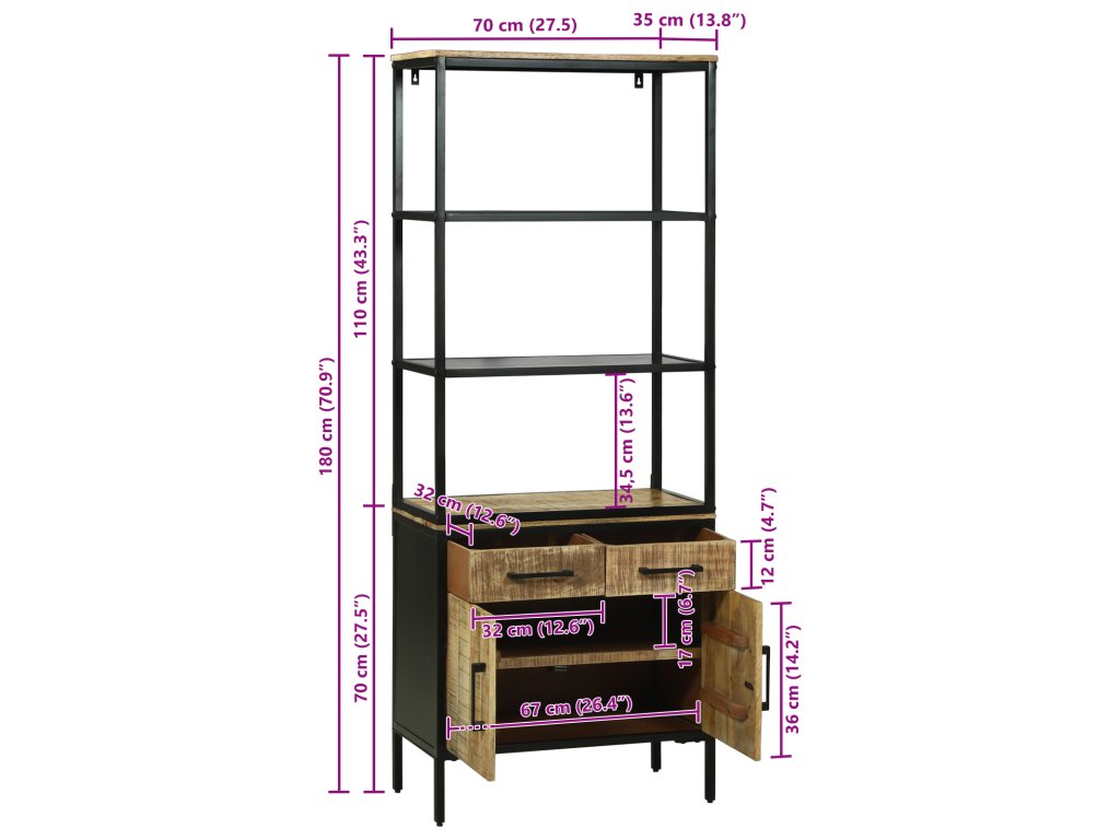 Vysoký bufet Hnědá 70 x 35 x 180 cm Masivní magnovníkové dřevo