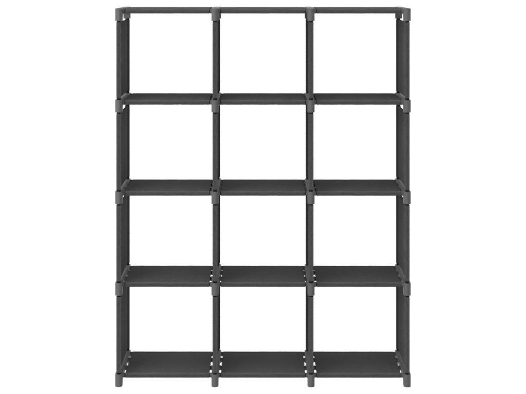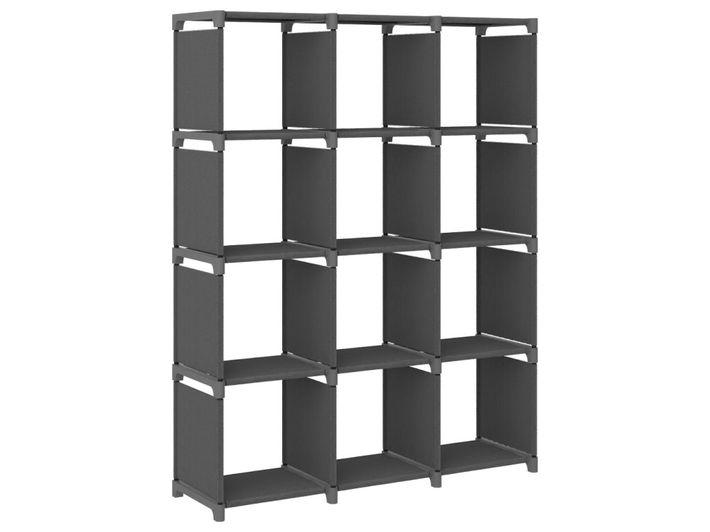 Policový regál je vyrobený z tkaniny a ocelového rámu, takže je pevný a stabilní. Tento samostatně stojící regál má 12 otevřených přihrádek a může sloužit jako ideální místo k vystavení knih, sběratelských předmětů, fotografií, ocenění, malých rostlin v květináčích atd.