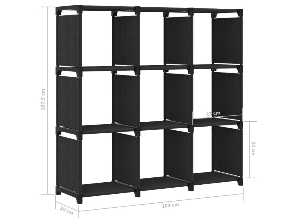 Výstavní police s 9 přihrádkami černá 103x30x107,5 cm textil
