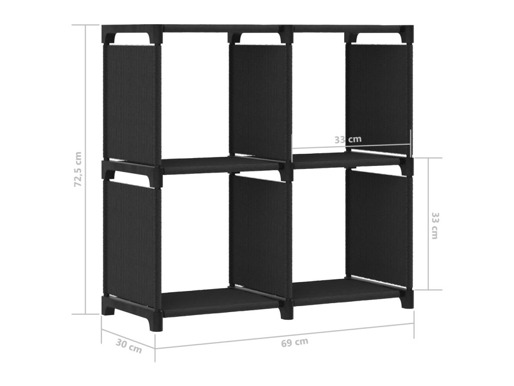 Výstavní police se 4 přihrádkami černá 69 x 30 x 72,5 cm textil