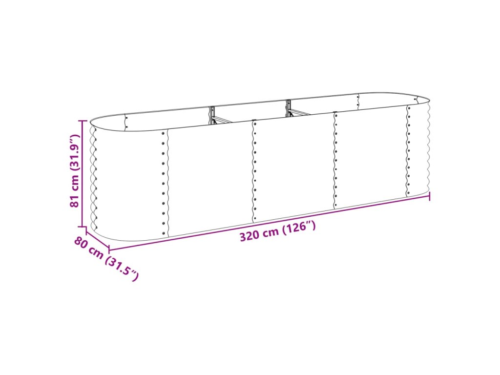 Vyvýšený záhon 320 x 80 x 81 cm pozinkovaná ocel stříbrný