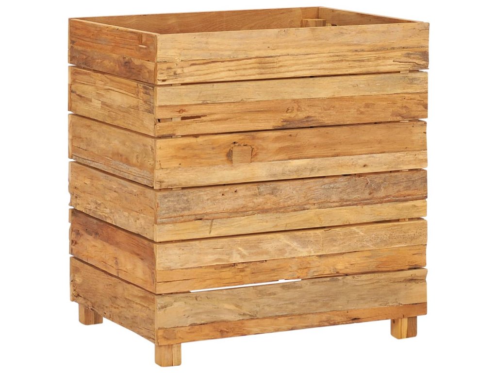 Tento truhlík je vyrobený z recyklovaného teakového dřeva, takže je mimořádně robustní a odolný. Krásná kresba dřeva propůjčuje každému kusu nábytku jeho jedinečný a od všech ostatních lehce odlišný vzhled. Čtyři dřevěné nohy ve spodní části zaručují lepší stabilitu. Dno truhlíku je opatřeno ocelovou podložkou, na kterou položíte své květináče. Sestavení tohoto produktu je snadné.