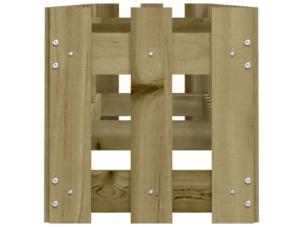 - Impregnované dřevo: Masivní borové dřevo je krásný přírodní materiál. Borové dřevo má rovnou kresbu a obsahuje suky, které materiálu dodávají jeho charakteristický, rustikální vzhled. Impregnace je konzervační proces, který se provádí pomocí autoklávu. Tlaková úprava zvyšuje odolnost proti trouchnivění a počasí.