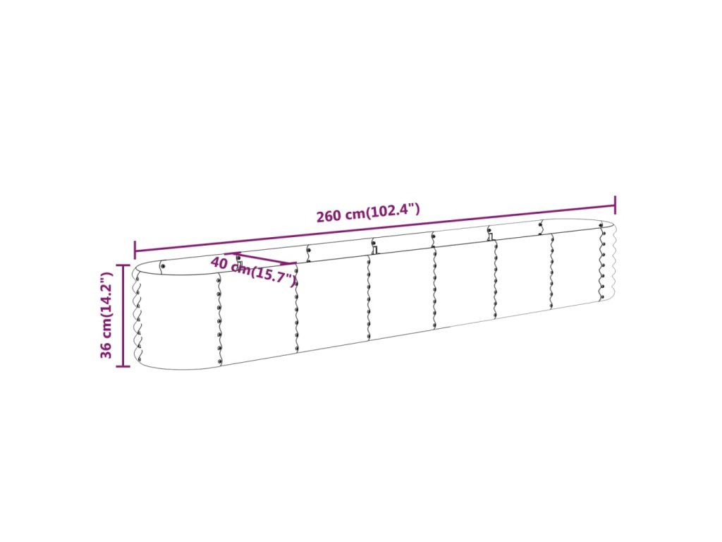Vyvýšený záhon pozinkovaná ocel 260x40x36 cm stříbrný