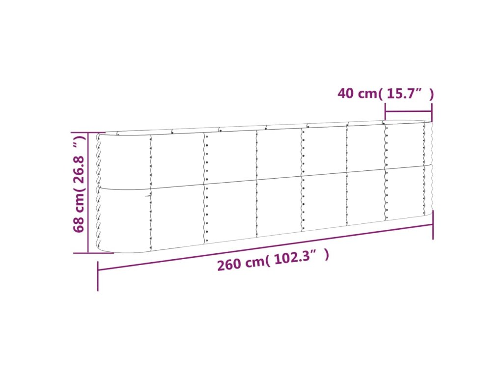 Vyvýšený záhon pozinkovaná ocel 260x40x68 cm hnědý