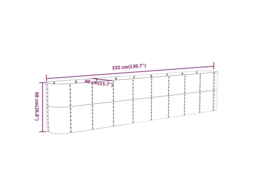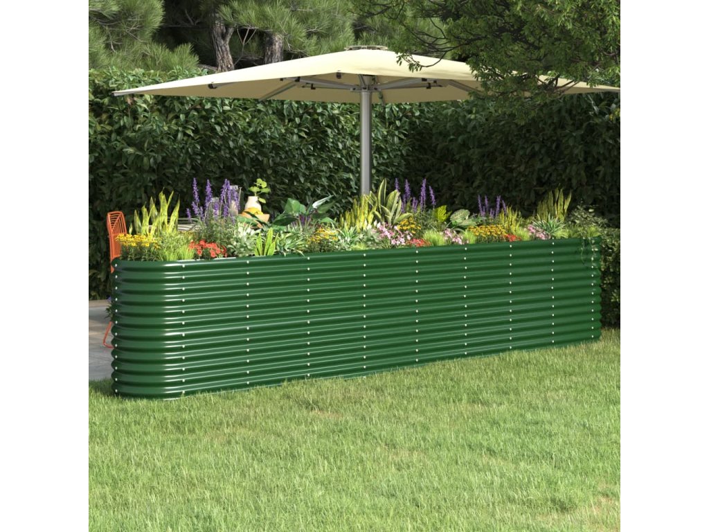 Vyvýšený záhon práškově lakovaná ocel 332x40x68 cm zelený