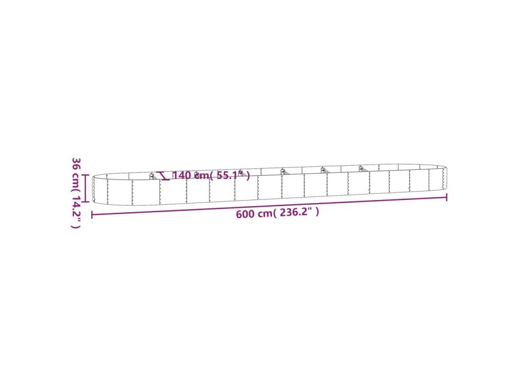 Vyvýšený záhon pozinkovaná ocel 600x140x36 cm stříbrný