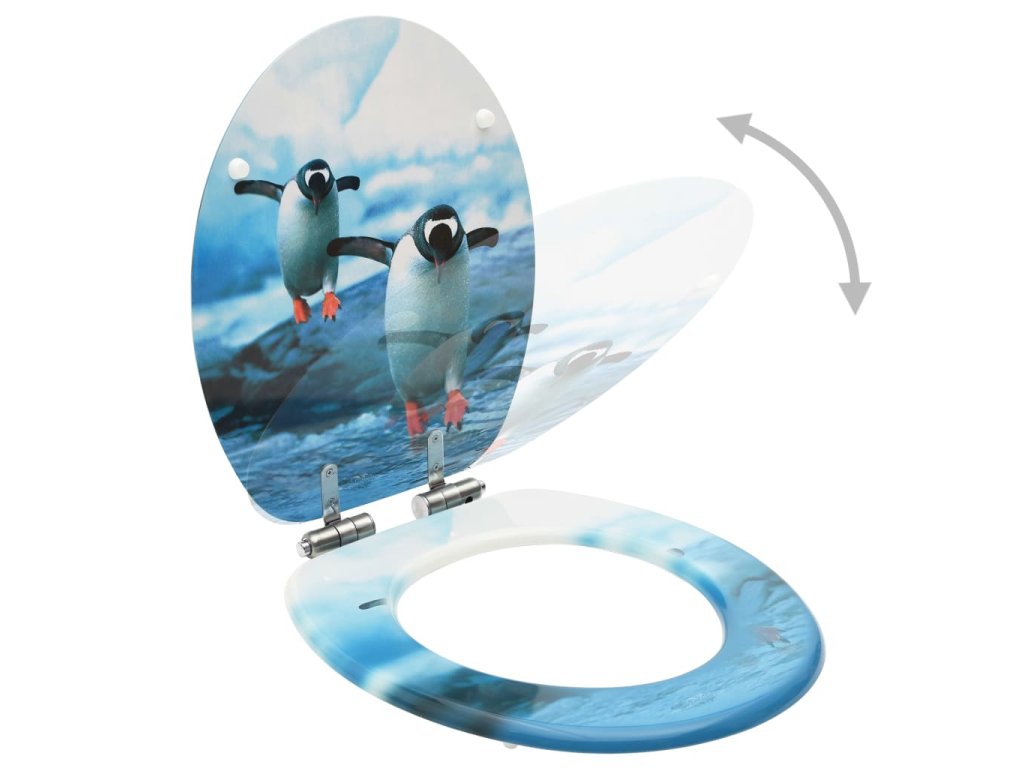 WC sedátka s funkcí pomalého sklápění 2 ks MDF motiv tučňáka