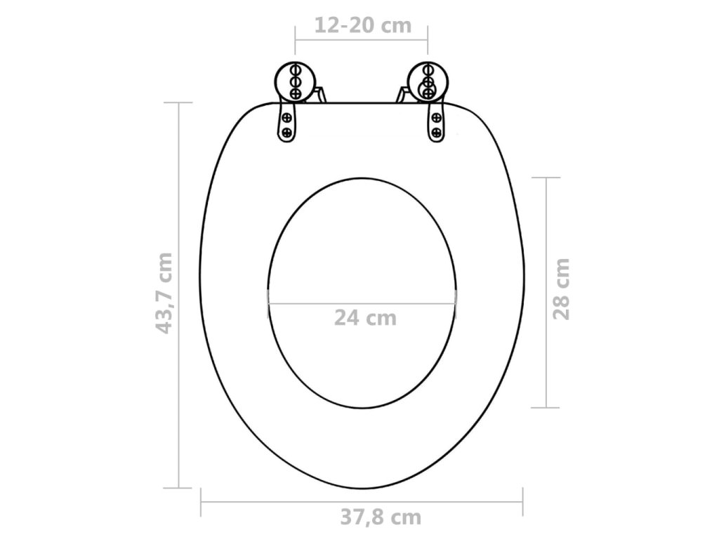 Víko i sedátko z MDF zaručují dlouhotrvající pevnost, odolnost a výdrž. Jelikož je toto WC sedátko určené pro dlouhodobé užívání, je vybavené panty, zhotovenými z extrémně silné a odolné slitiny chromu a zinku. Záchodové prkénko sedí na všechny běžné záchodové mísy. Šířka mezi panty je nastavitelná v rozmezí od 12 do 20 cm. Montáž i údržba WC sedátka jsou snadné.