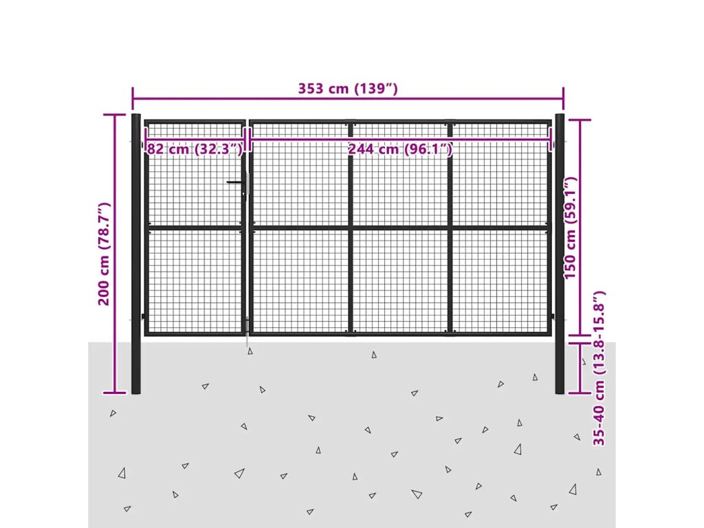 Tato robustní a odolná plotová brána je vyrobena z pevné oceli. Nepodléhá korozi a je vhodná pro dlouhodobé venkovní použití. Naše zahradní brána je zhotovená ze silných svařených drátů, které tvoří extra pevné pletivo. Představuje tedy bezpečnou bariéru a zároveň vytvoří báječný vstup na váš pozemek.