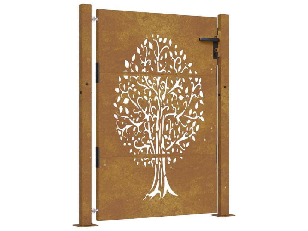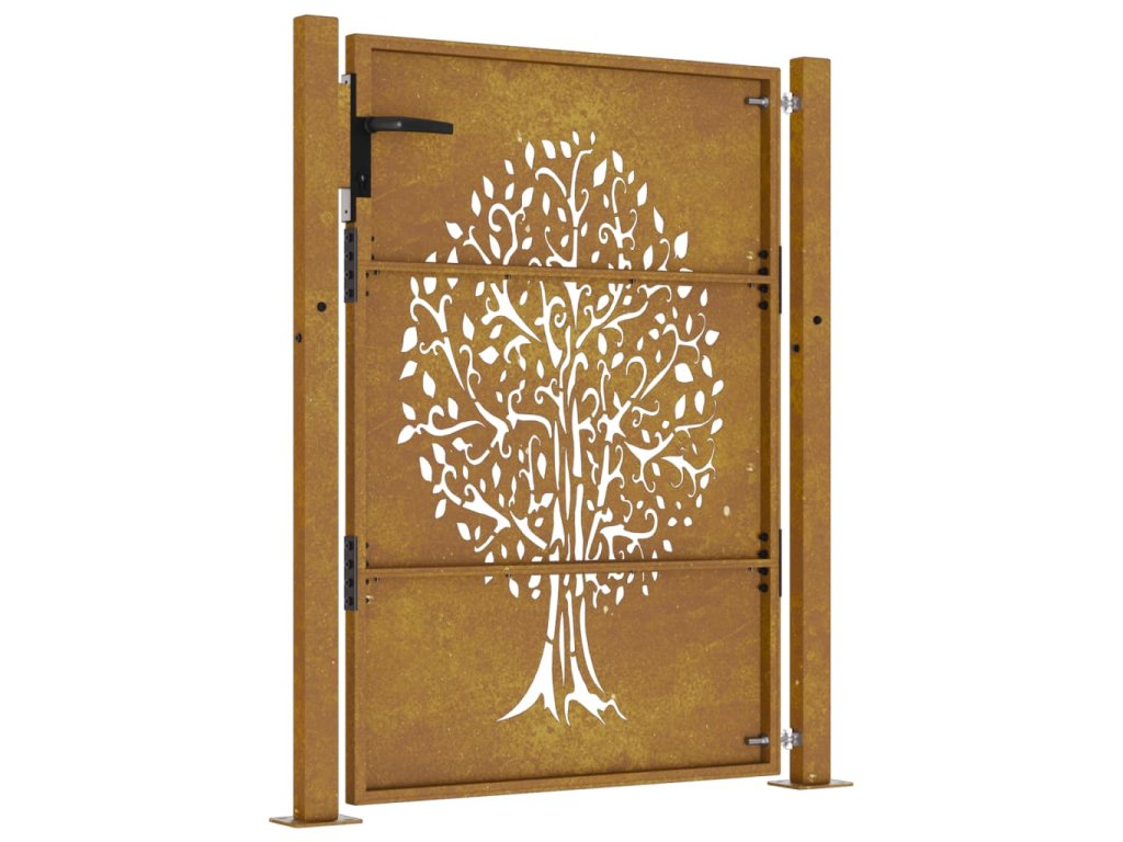 Zahradní branka 105 x 130 cm z cortenové oceli, design stromu