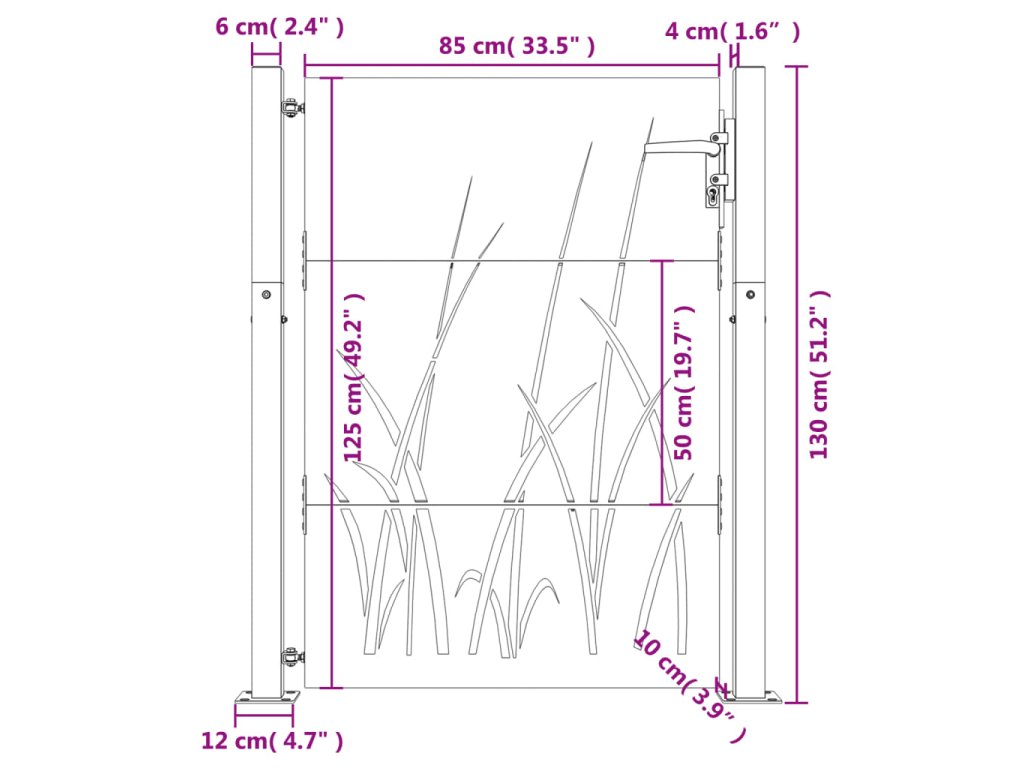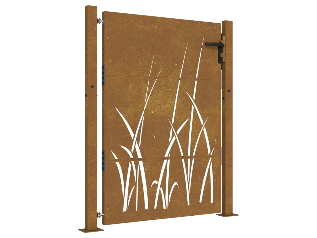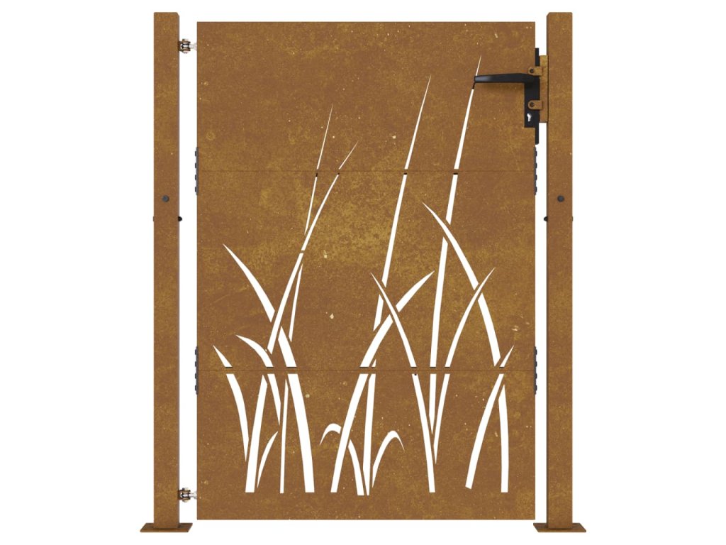 Zahradní branka 105 x 130 cm z cortenové oceli, design s trávou