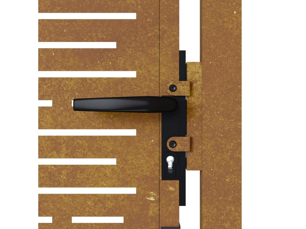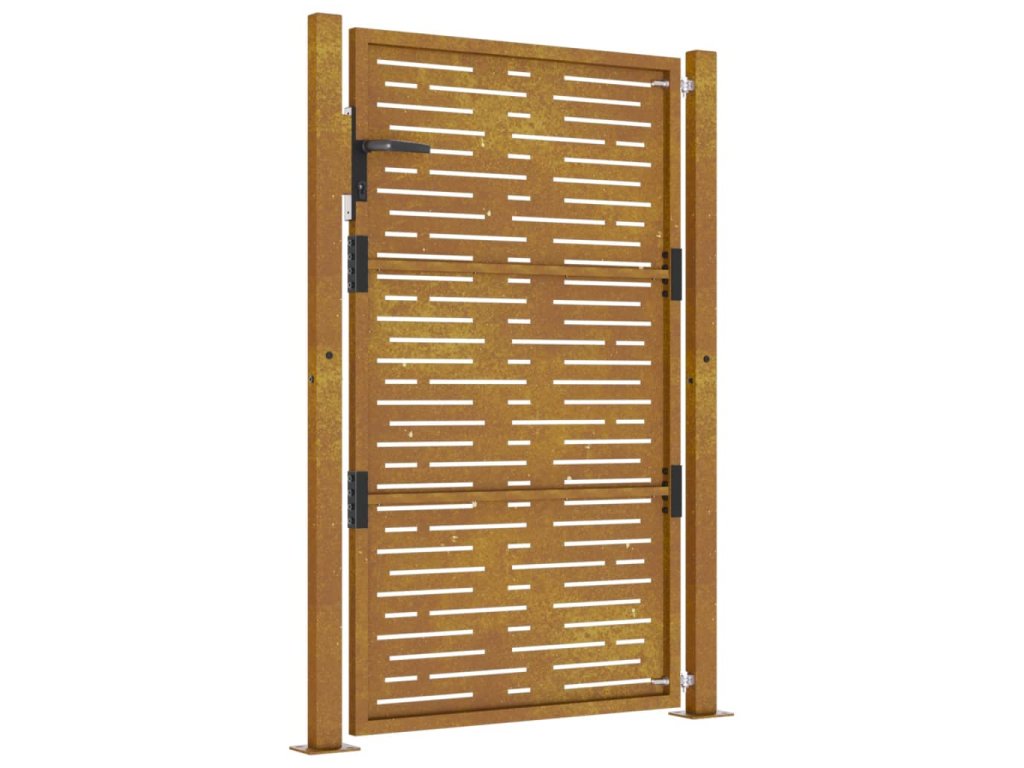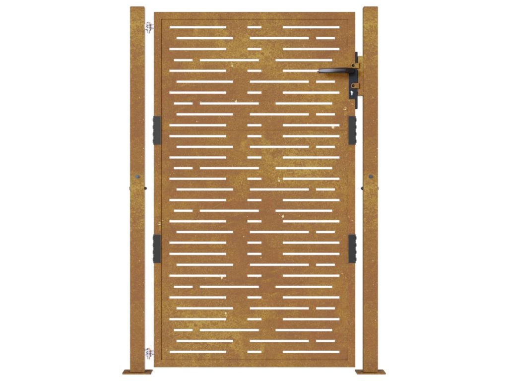 - Odolná konstrukce: Tato zahradní branka je vyrobená z cortenové oceli. Cortenová ocel, také známá jako povětrnostně odolná ocel. Je ze své podstaty antikorozní. Při prvním vystavení atmosférickým podmínkám se na ní vytvoří rezavá ochranná vrstva proti korozi. Nemusíte ji tedy natírat. Tím ušetříte náklady na údržbu a opravy. Výrazný hnědý odstín cortenové oceli jistě upoutá pozornost. Povětrnostně odolná ocel je výjimečně odolná a obstojí ve zkoušce času.