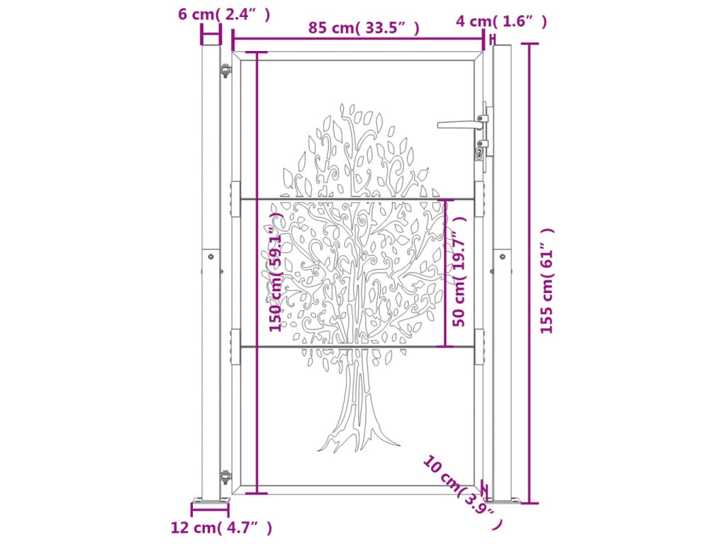 Zahradní branka 100 x 150 cm z cortenové oceli, design stromu