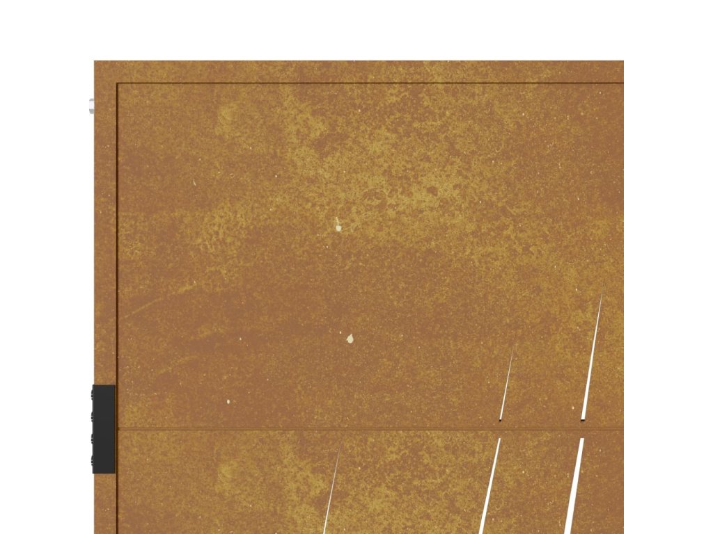 - Odolná konstrukce: Tato zahradní branka je vyrobená z cortenové oceli. Cortenová ocel, také známá jako povětrnostně odolná ocel. Je ze své podstaty antikorozní. Při prvním vystavení atmosférickým podmínkám se na ní vytvoří rezavá ochranná vrstva proti korozi. Nemusíte ji tedy natírat. Tím ušetříte náklady na údržbu a opravy. Výrazný hnědý odstín cortenové oceli jistě upoutá pozornost. Povětrnostně odolná ocel je výjimečně odolná a obstojí ve zkoušce času.