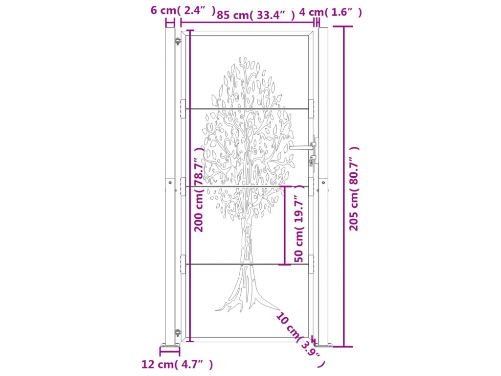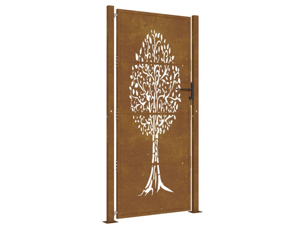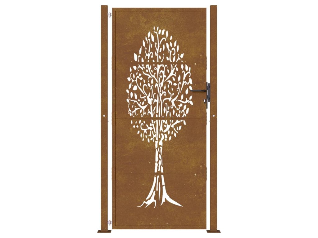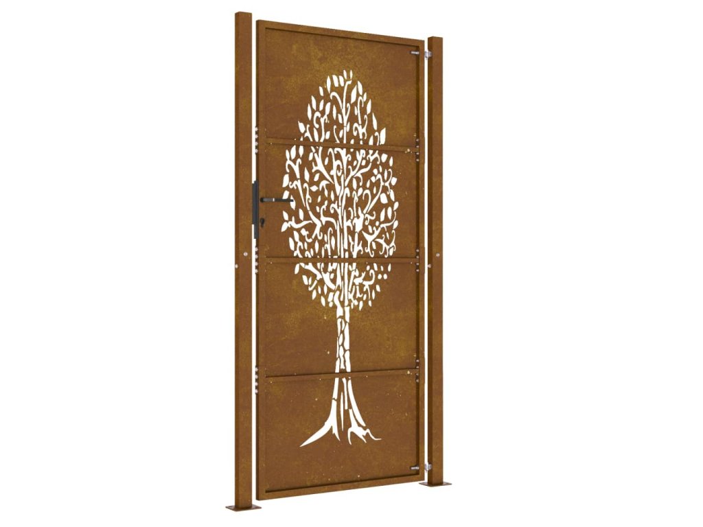 Zahradní branka 105 x 205 cm z cortenové oceli, design stromu