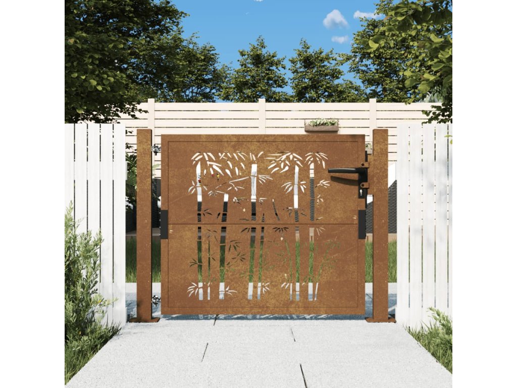 Zahradní branka 105 x 80 cm corten ocel bambusový design