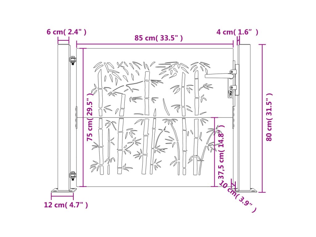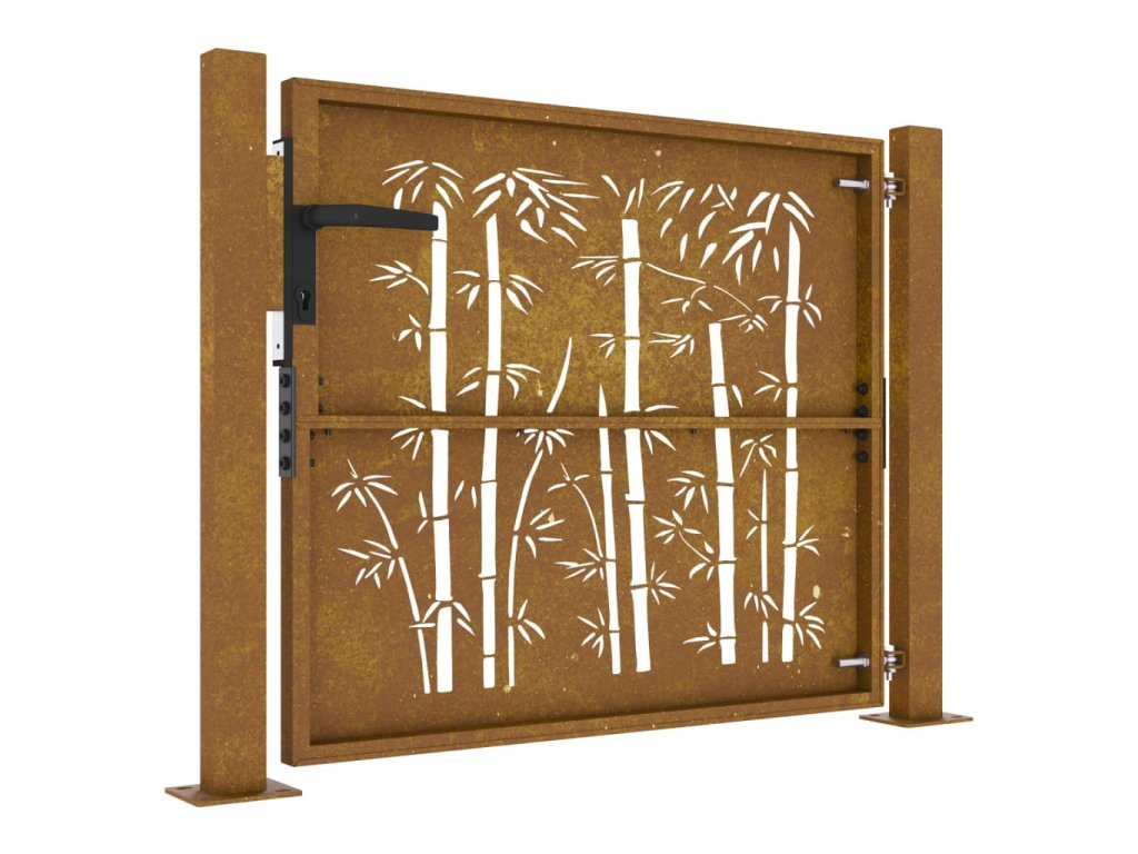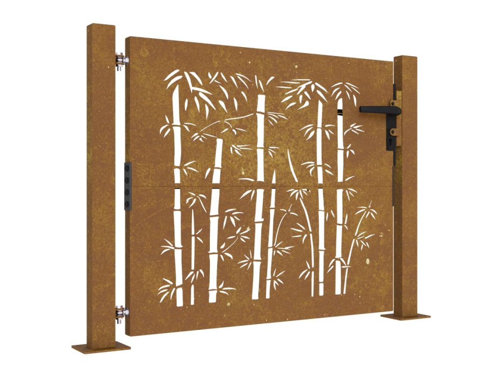 Zahradní branka 100 x 75 cm corten ocel bambusový design