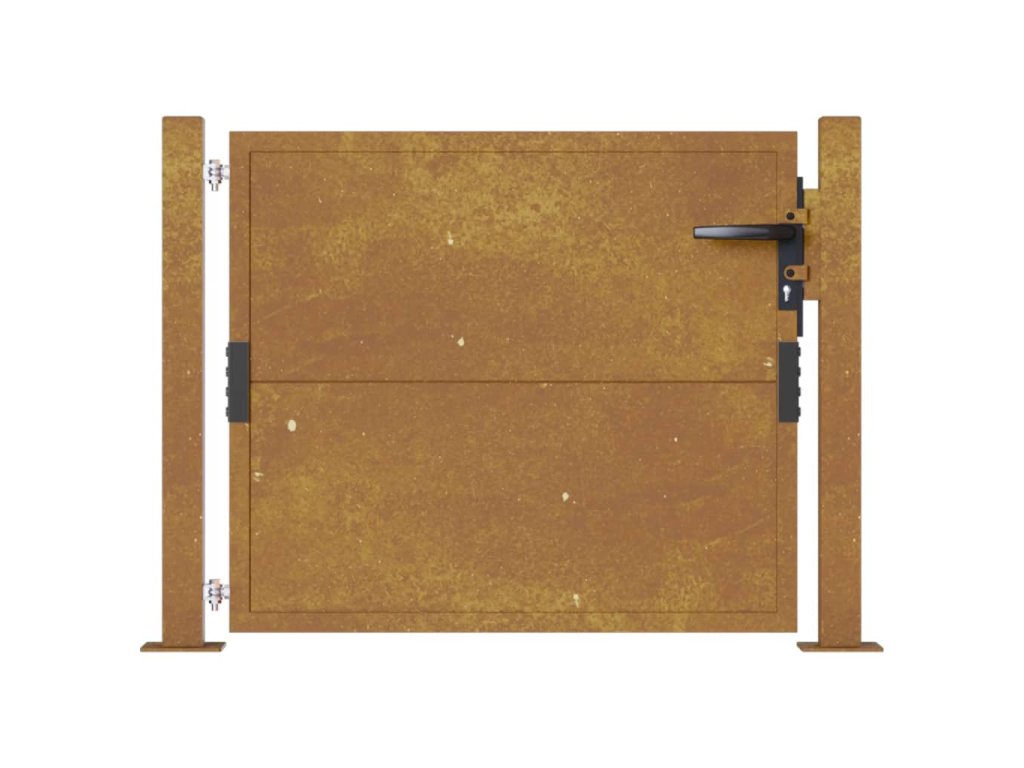 - Odolná konstrukce: Tato zahradní branka je vyrobená z cortenové oceli. Cortenová ocel, také známá jako povětrnostně odolná ocel. Je ze své podstaty antikorozní. Při prvním vystavení atmosférickým podmínkám se na ní vytvoří rezavá ochranná vrstva proti korozi. Nemusíte ji tedy natírat. Tím ušetříte náklady na údržbu a opravy. Výrazný hnědý odstín cortenové oceli jistě upoutá pozornost. Povětrnostně odolná ocel je výjimečně odolná a obstojí ve zkoušce času.