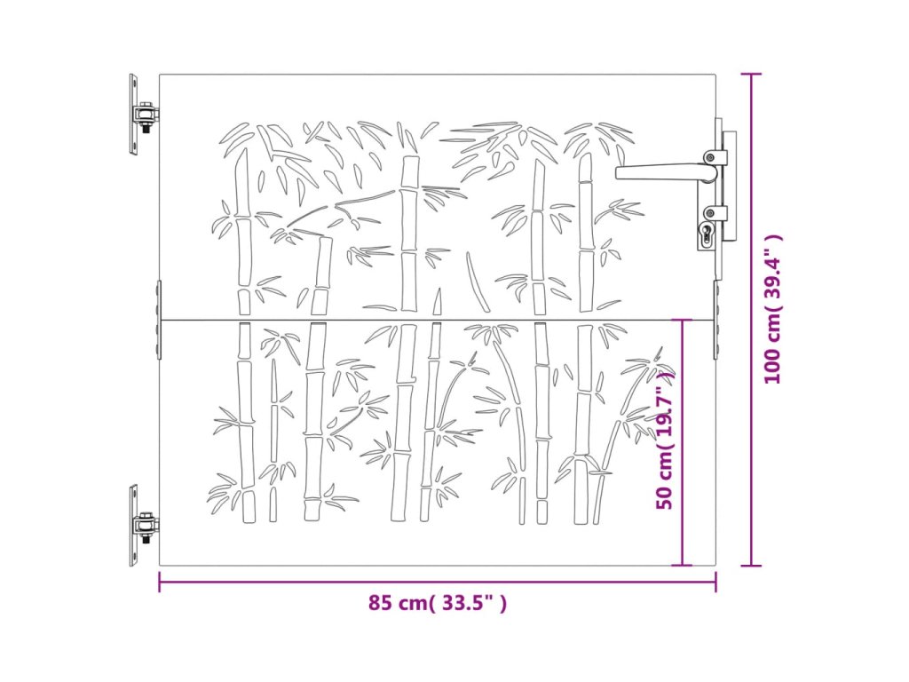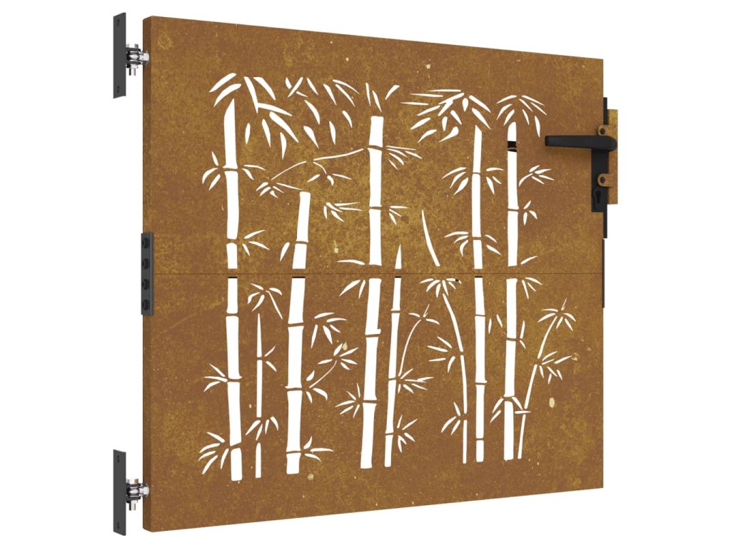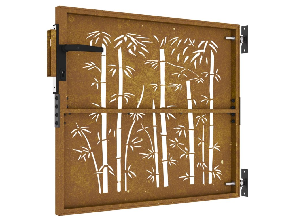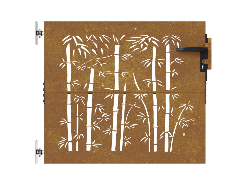 Zahradní branka 85 x 100 cm corten ocel bambusový design