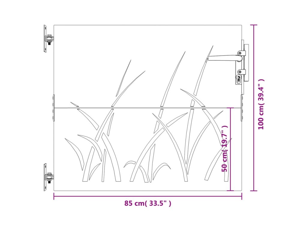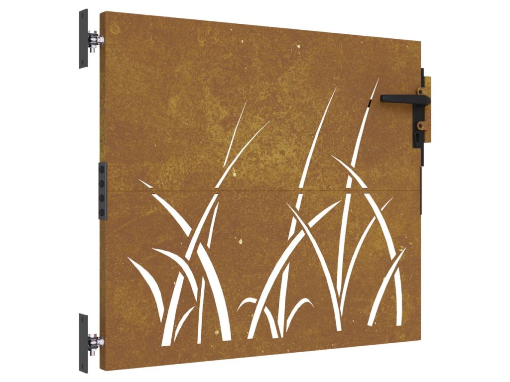 Zahradní branka 85 x 100 cm cortenová ocel Tráva