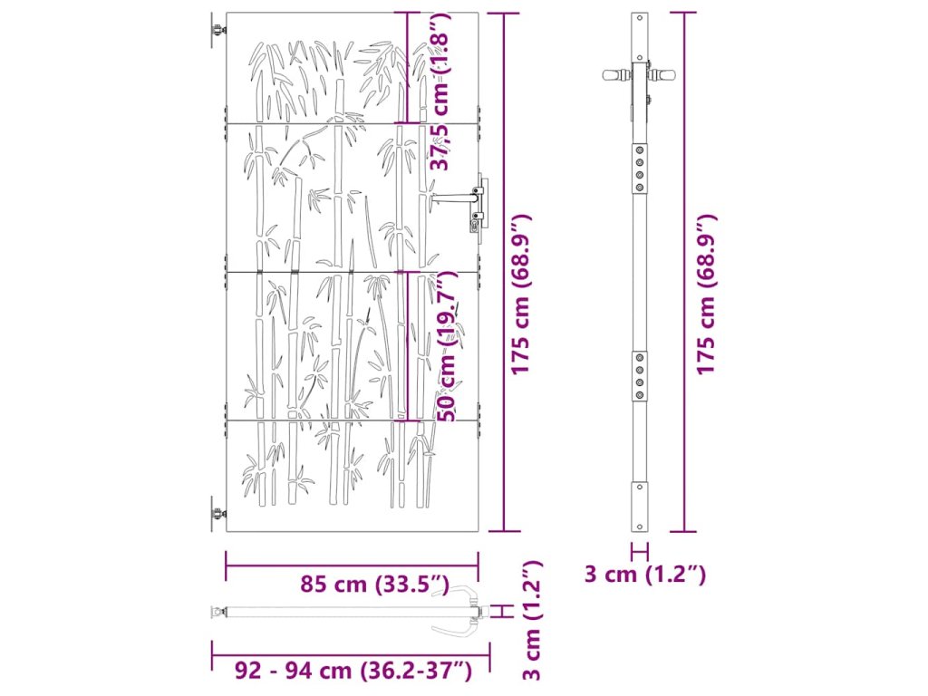 Zahradní branka 85 x 175 cm cortenová ocel Bambus