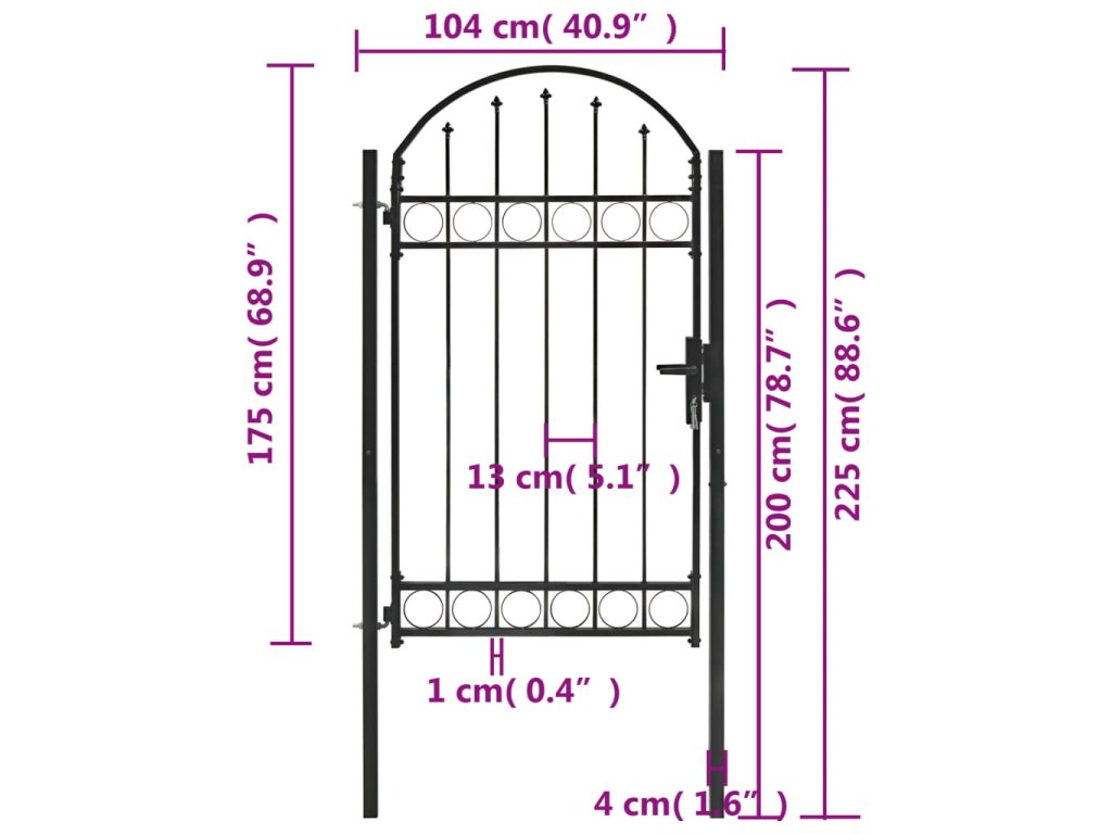 Plotová branka s klenutým vrškem ocelová 104 x 175 cm černá