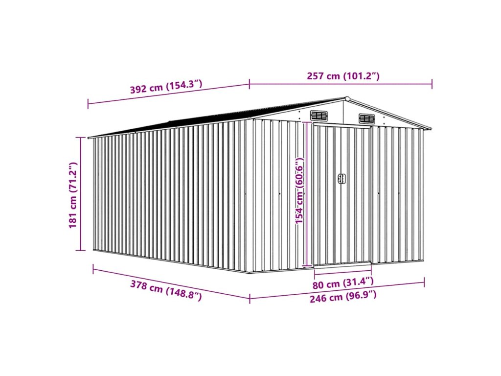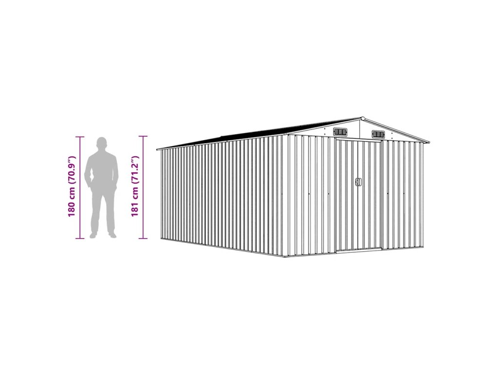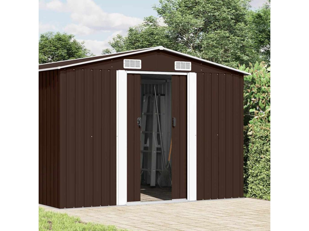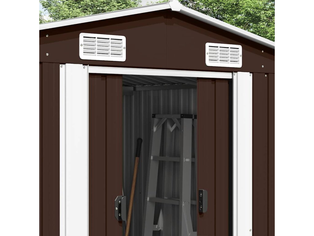 Tento úložný přístřešek má větrací otvory v přední i zadní části, které zajišťují vynikající ventilaci. Dvojité posuvné dveře v přední části umožňují snadný vstup a výstup. Konstrukce z pozinkované oceli spolu s práškovým nástřikem zaručují pevnost a odolnost kůlny na nářadí.
