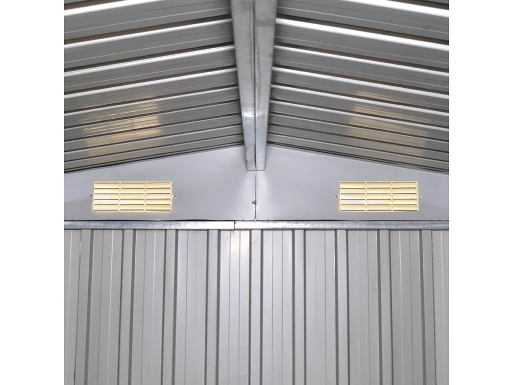 Konstrukce z pozinkované oceli je odolná a pevná, takže kůlna nepodléhá korozi ani jiným vlivům extrémních povětrnostních podmínek. Obsahuje také ocelový podlahový rám, který zvyšuje její stabilitu a výborně se hodí jako podklad pro položení dřevěné podlahy (dřevo není součástí balení).