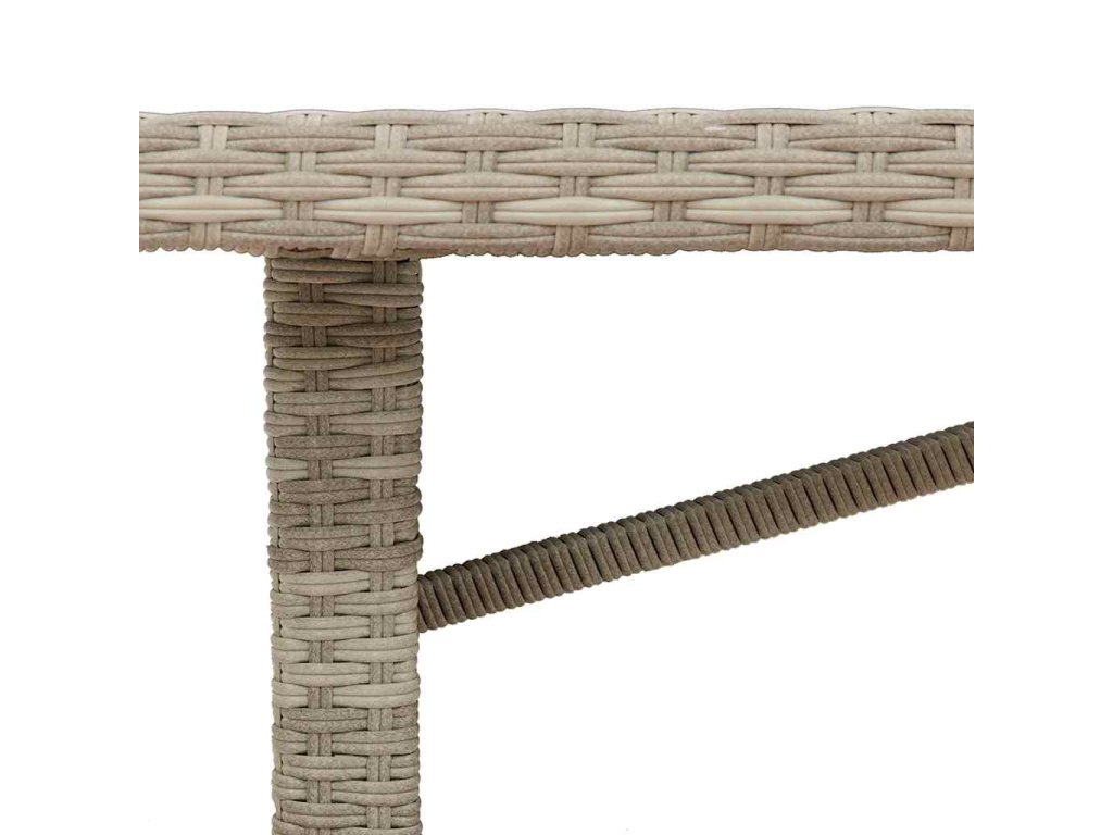 - Špičkové materiály: Vyrobeno z kvalitního poly ratanu a tvrzeného skla pro sílu a styl. Poly ratan hezky vypadá a dobře snáší slunce a déšť.