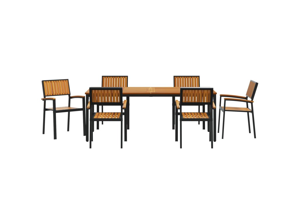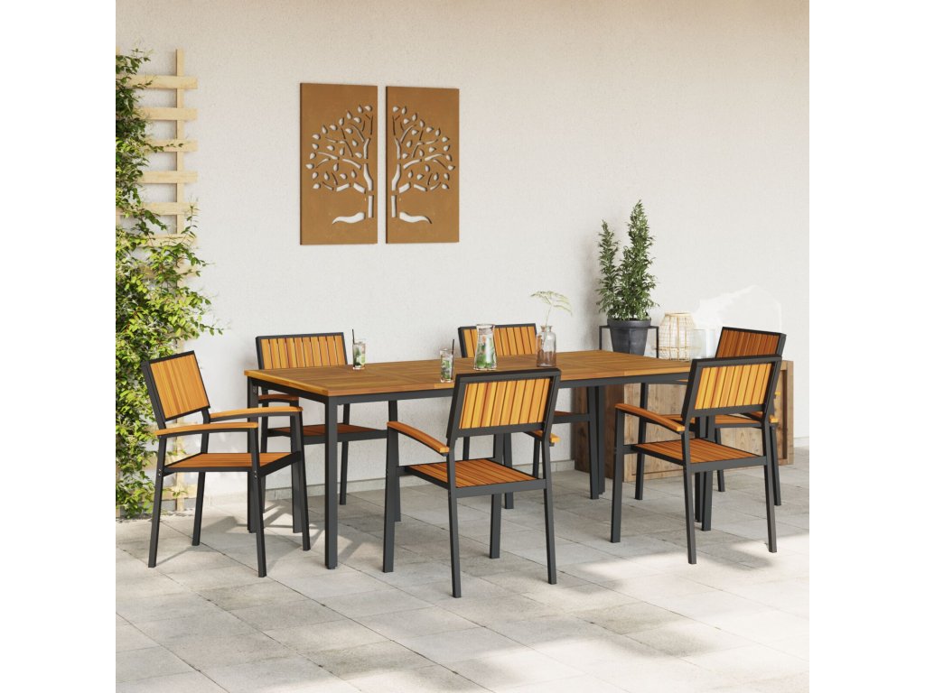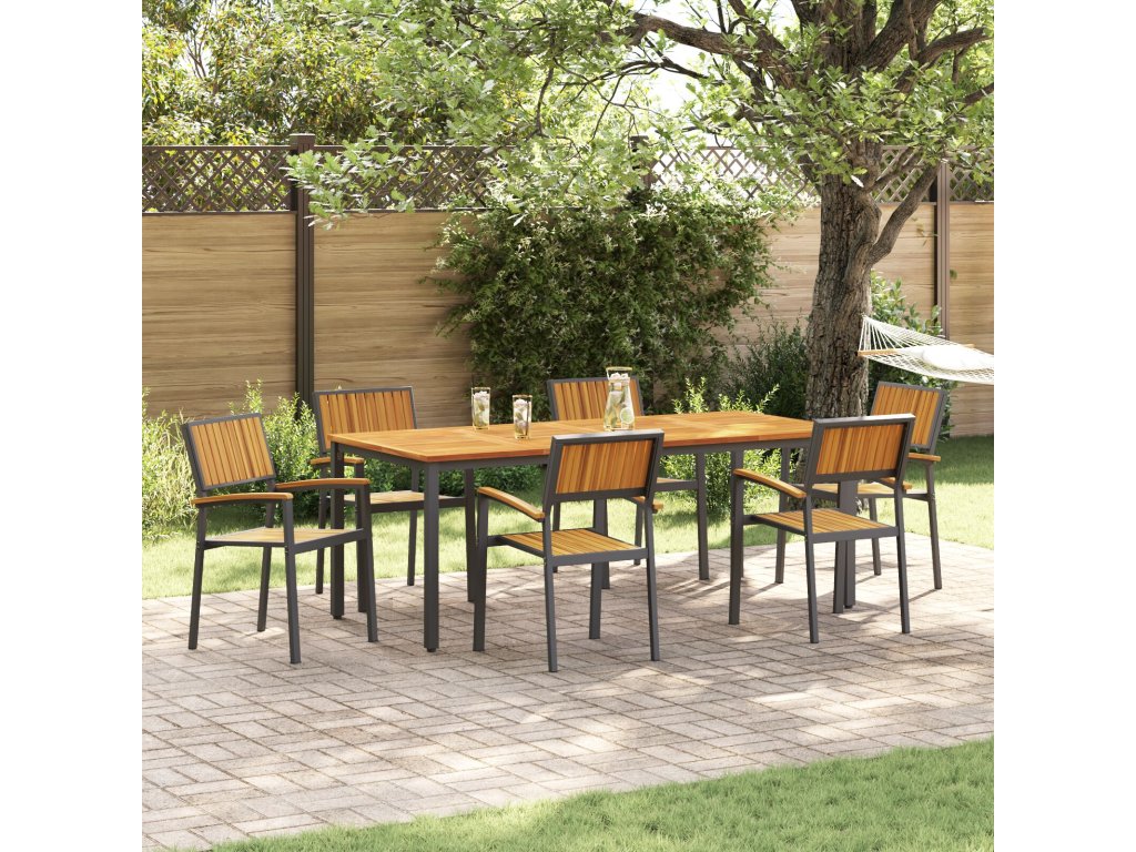 - Materiály: Super kombinace masivního akáciového dřeva a silné oceli, suitable for co vydrží. Akácie má krásnou texturu a je silný, skvěle se doplňuje se solidními ocelovými rámy – ideální do každého počasí.