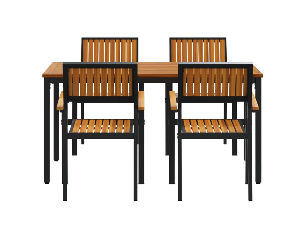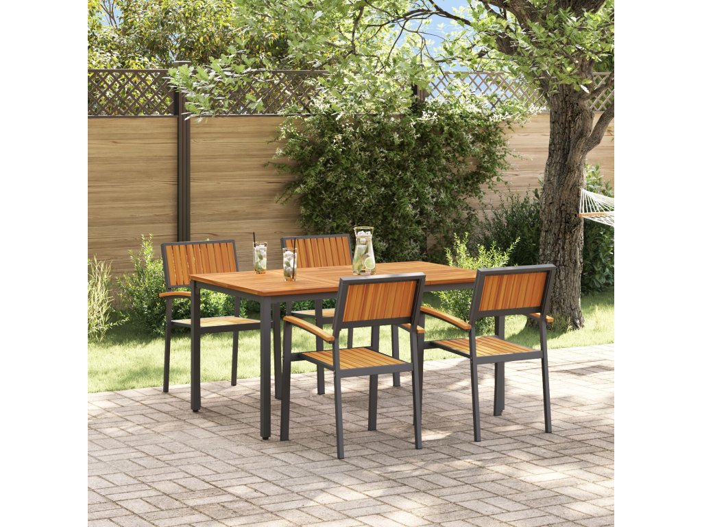 - Materiály: Super kombinace masivního akáciového dřeva a silné oceli, suitable for co vydrží. Akácie má krásnou texturu a je silný, skvěle se doplňuje se solidními ocelovými rámy – ideální do každého počasí.