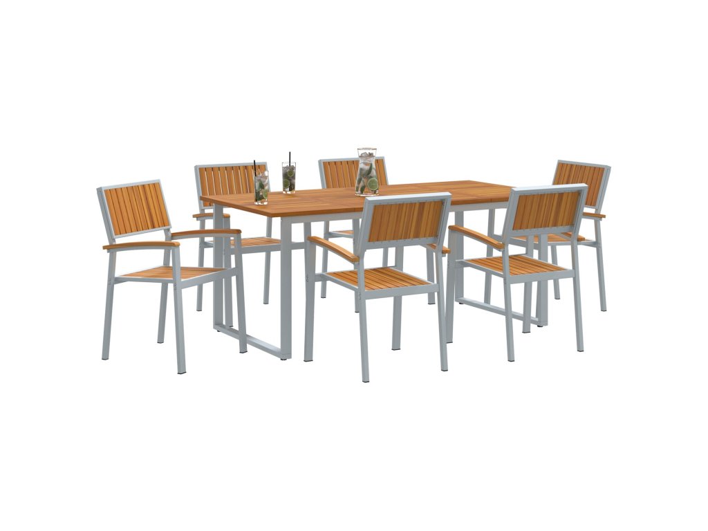 - Součásti: S pevným masivním akáciovým dřevem na opěrkách je tahle souprava zaměřená na komfort a odolnost. Ocelové nohy ji drží stabilní a bez problémů zvládá časté používání. Povrch, sezení a rám z masivního akáciového dřeva vytvářejí hezký a stylový vzhled.