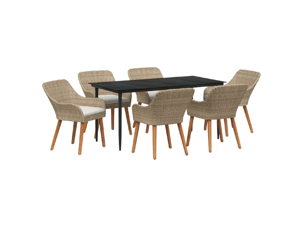 Zahradní jídelní souprava s polštářem 7 pcs Béžová polyratan