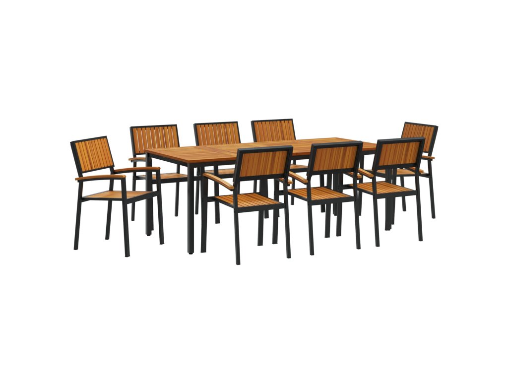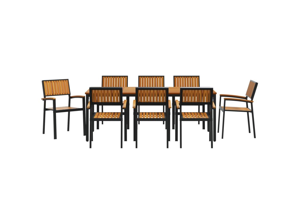 Zahradní jídelní souprava 9 pcs Černá a hnědá 200 x 90 x 75 cm