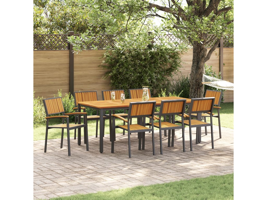 - Materiály: Super kombinace masivního akáciového dřeva a silné oceli, suitable for co vydrží. Akácie má krásnou texturu a je silný, skvěle se doplňuje se solidními ocelovými rámy – ideální do každého počasí.