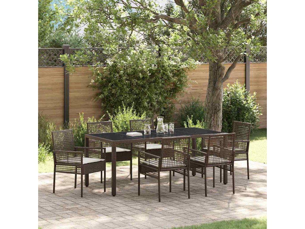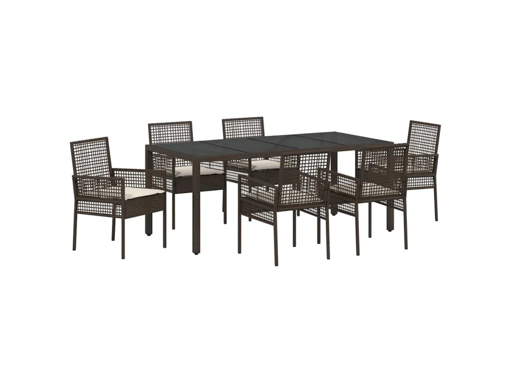 Zahradní jídelní souprava 7 pcs Hnědá Poly ratan